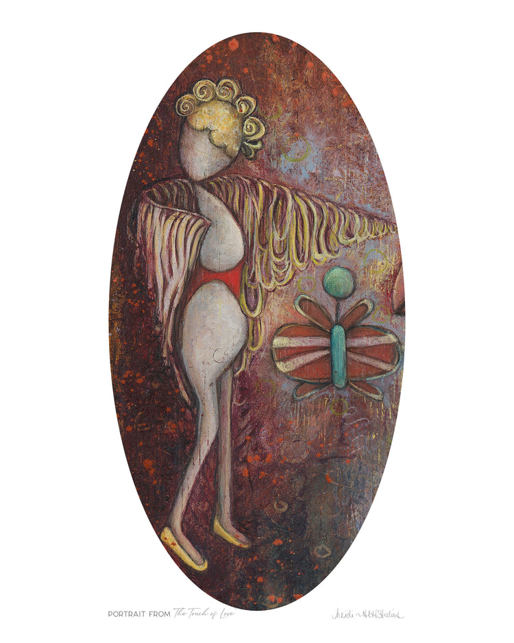 Inspired by 18th century portraits this series puts one’s attention on only one of the Beings found within the oil & mixed medium painting. Intuitive layers of oil, cold wax, embroidery, powdered pigments, and solvents were used to build up ‘The Touch of Love’, a part of my Stories on Wood Collection.